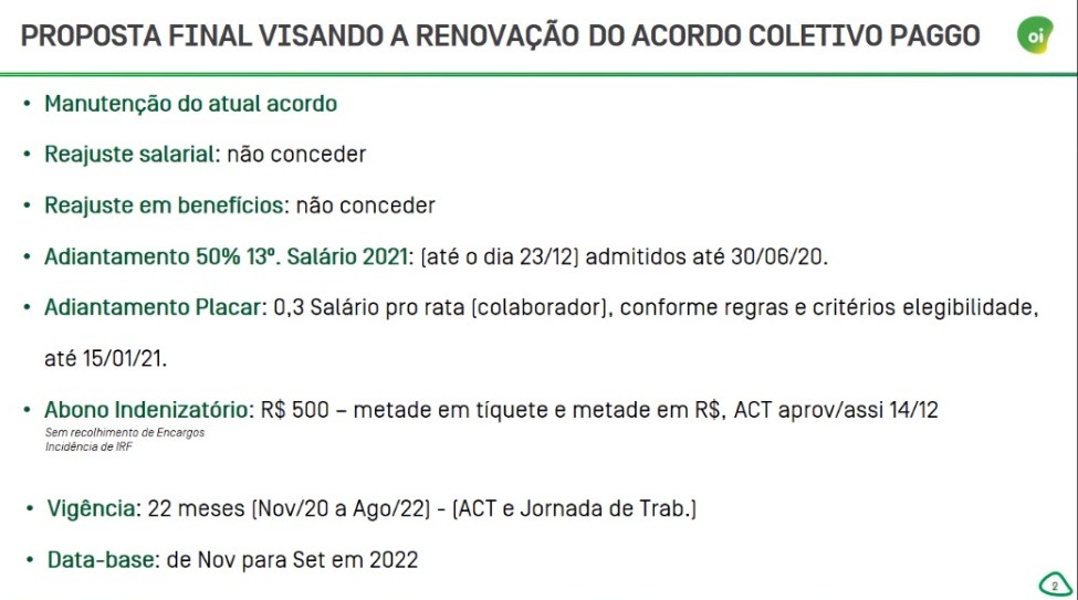 operadora e o Sinttel Bahia para fechamento do Acordo Coletivo de Trabalho 2020/2022, durante a assembleia virtual realizada hoje (09), às 14h, via Zoom Metting. Foram computados 15 votos a favor da proposta e 1 voto contra.