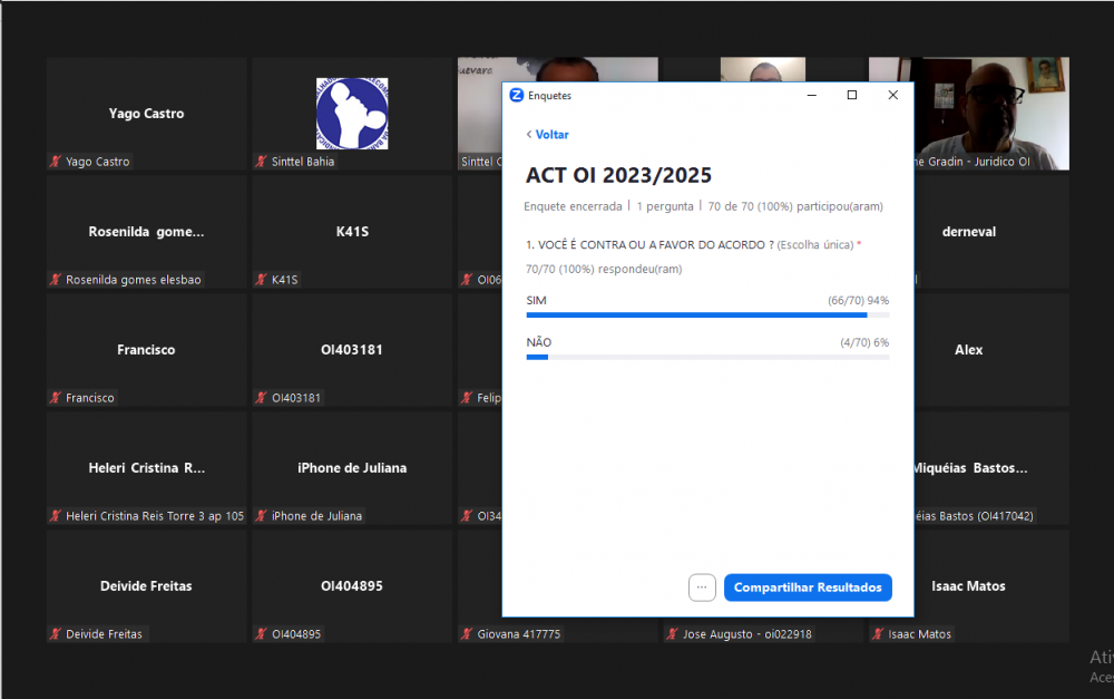 Em assembleia virtual realizada na manhã desta quarta-feira 1º de novembro, os trabalhadores da Oi Bahia aprovaram a proposta do Acordo Coletivo 2023/2025.