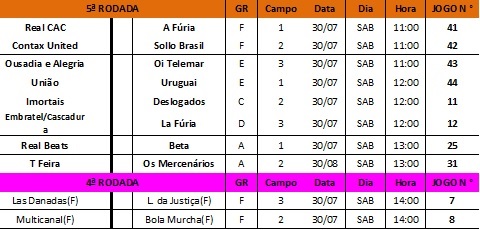 Quinta rodada marcará o fim da fase de classificação da 2ª Copa Sinttel de Futebol neste sábado (30)