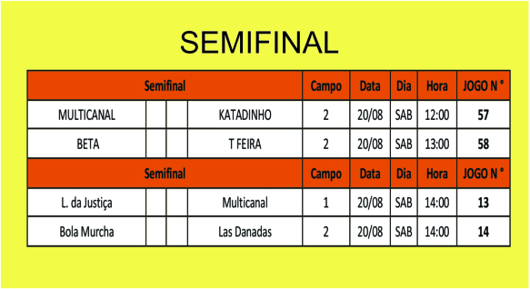 No futebol feminino, os jogos serão realizados paralelamente entre os times Liga da Justiça e Multicanal; e Bola Murcha e Las Danadas, às 14h.